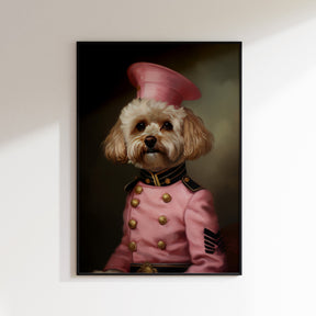 From the boundless energy of a Labrador to the poised elegance of a Poodle, all draped in whimsical pink uniforms. Marrying the playful essence of our canine companions with the dignified charm of military attire, this collection is both heartwarming and captivating. 'The Pup Parade' is not just art; it's an invitation to a vibrant celebration of loyalty, friendship, and joy. Immerse yourself in this paw-sitively enchanting parade and let every piece tug at your heartstrings.